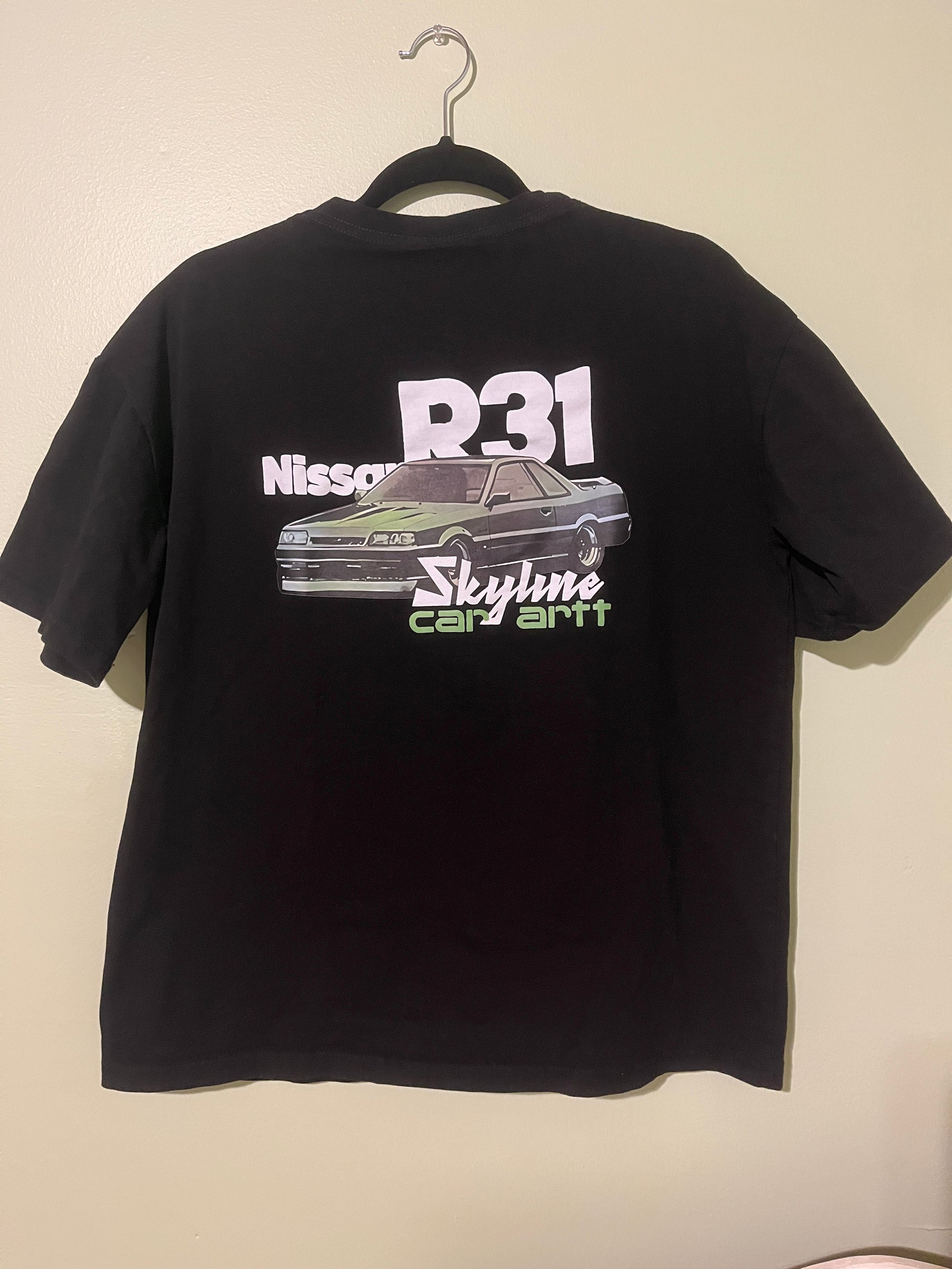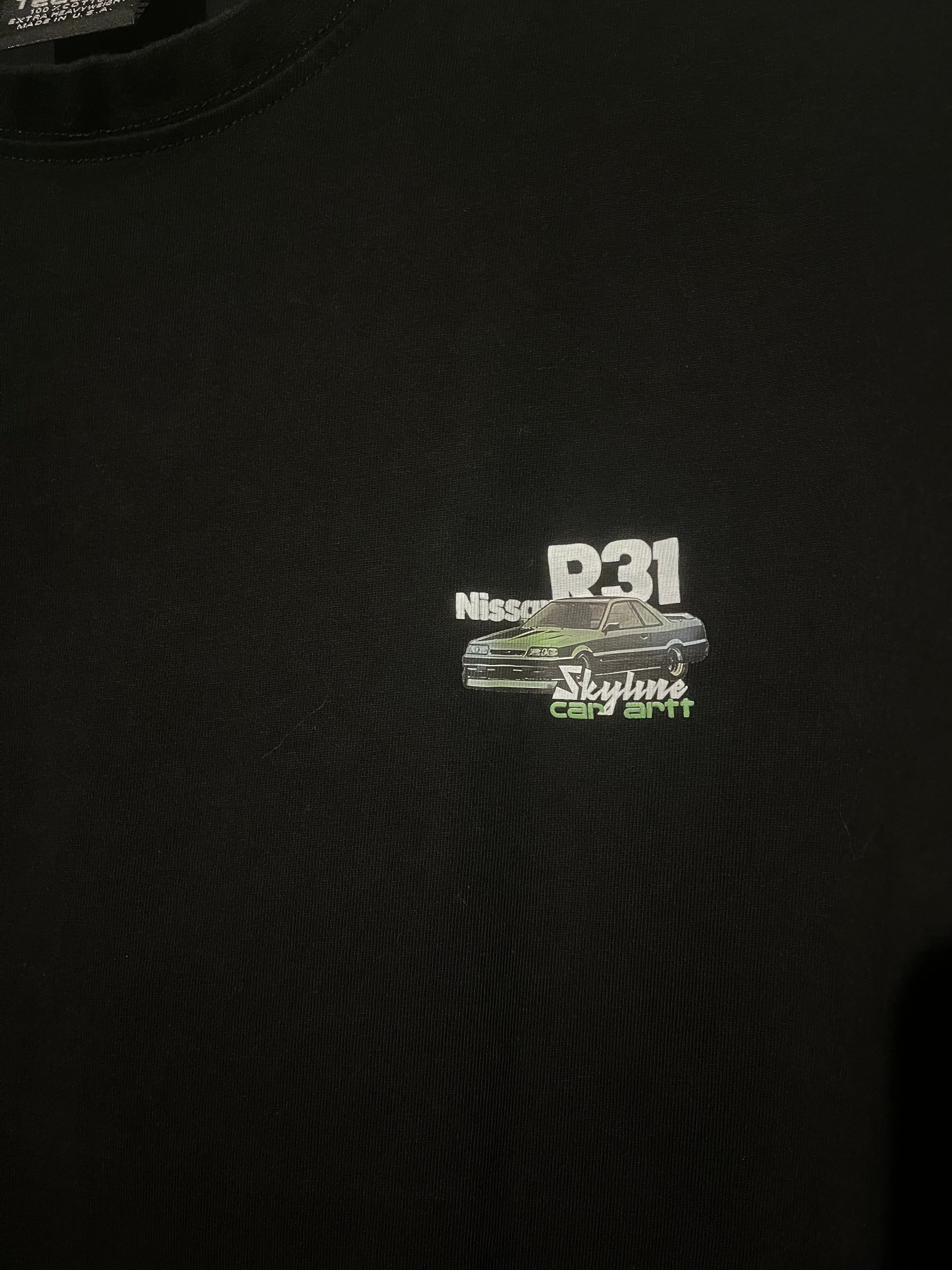 Celebrate JDM history with this bold graphic tee featuring the iconic Nissan R31 Skyline, complete with its classic boxy silhouette and turbocharged legacy. Perfect for car enthusiasts, this shirt blends retro style with motorsport heritage in a clean, street-ready design.